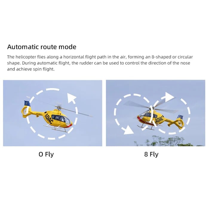 Equipped with a 16V high-power motor and H1 flight controller featuring omnidirectional positioning, the FLYWING EC135 supports stable upright/inverted GPS-assisted hovering. Includes intelligent return-to-home function, automatically flying back to the takeoff point when signal is lost or the battery runs low. Seamlessly switch between 3D stunt mode and GPS mode for safe recovery during complex flights.